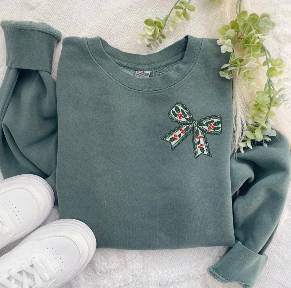 Evergreen Cottagecore Christmas Bow Sweatshirt